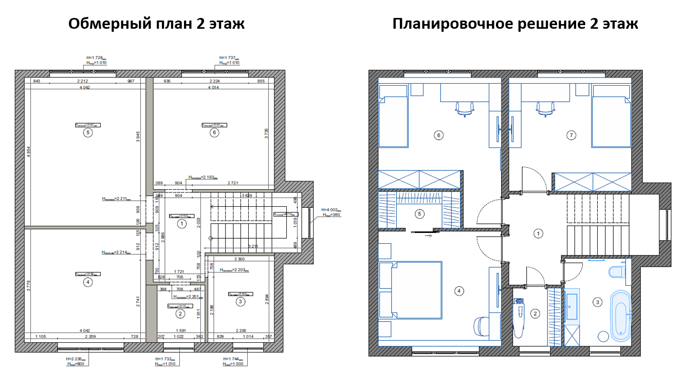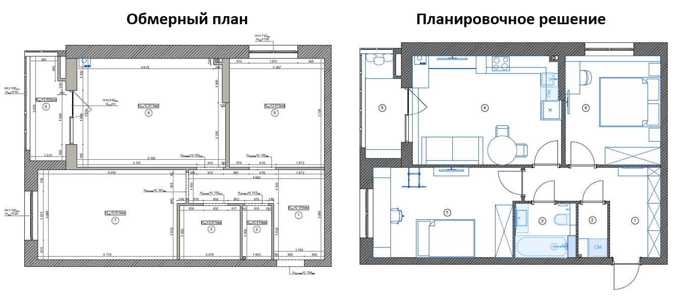 - Развертки по стенам всех комнат с указанием размеров и площадей